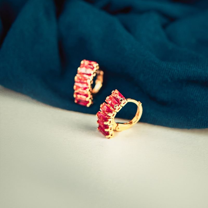 Argola com zircônias em corte navete de cor rosa folheada a ouro 18k