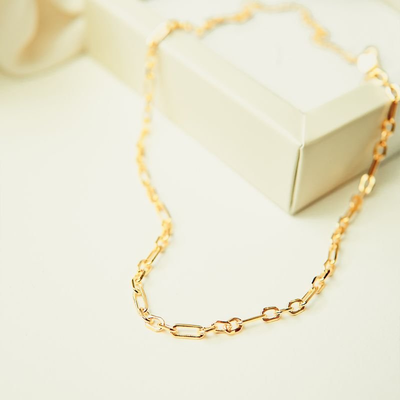 A choker de elos cartier em uma nova versão, mais minimalista não deixando de ser poderosa e de elos 3x1. Pronta para compor o teu mix e fica linda com o teu personalizado.