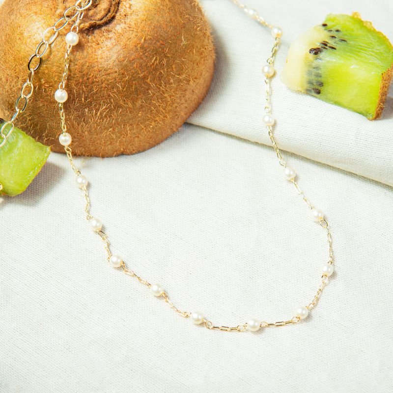 O charme clássico em uma versão leve e iluminada. Cada pérola alinhada na corrente cria um brilho suave que realça o colo e transforma qualquer mix, a delicadeza que nunca sai de moda.