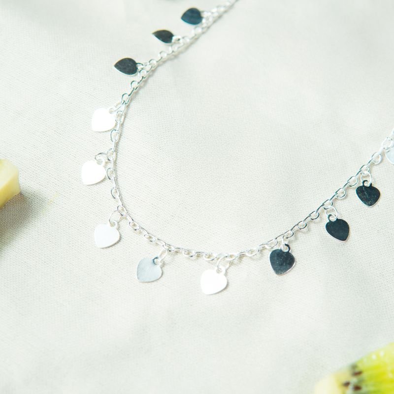 A Choker Corações é toda sobre leveza, muito charme e movimento. As mini plaquinhas de coração se movem suavemente no colo, criando um reflexo delicado e romântico.