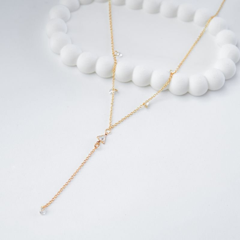 O colar gravatinha é a tradução da sofisticação moderna. Seu design alongado e o detalhe em triângulo com cristais trazem brilho na medida certa, é perfeito para quem ama acessórios versáteis e cheios de personalidade. Um toque contemporâneo que eleva do look de trabalho ao jantar especial.
